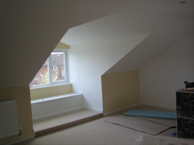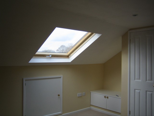 These photos were taken during a conversion that added a family room and office, each with dormer and large Velux window, plus landing area and additional stairs. We also converted the existing staircase to match the new flight and improve child safety. By fitting Velux windows in all three loft rooms, we ensured plenty of light and good summer ventilation.