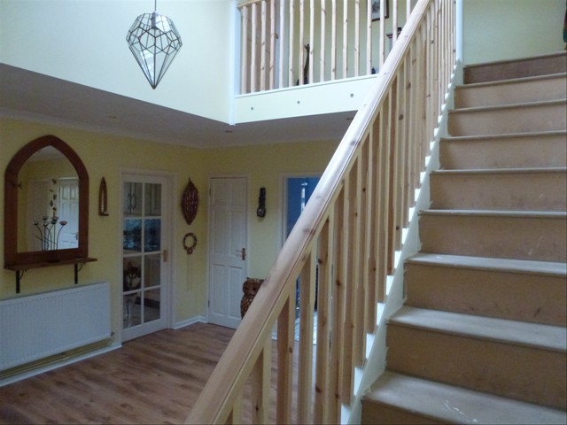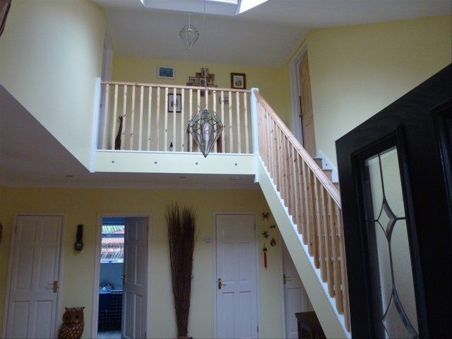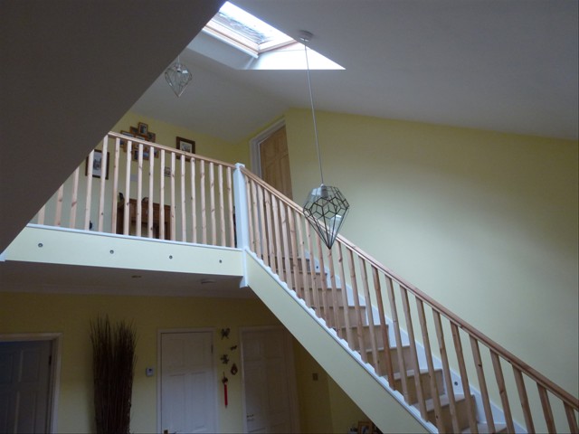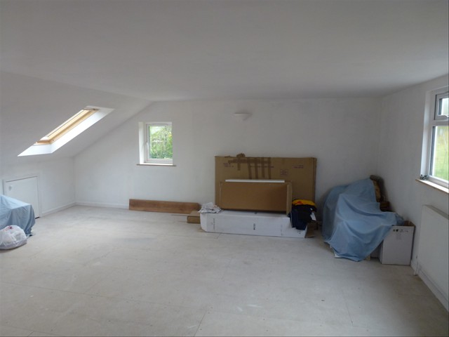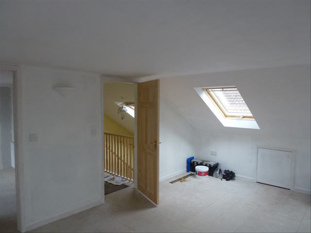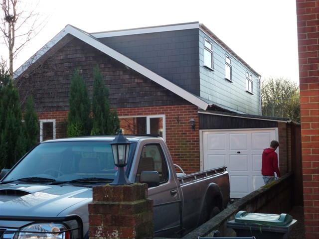 We carried out a large loft conversion in Ludgershall, Hampshire, creating 2 extra bedrooms and a lovely gallery style entrance hallway. We removed one bedroom from the ground floor and added a large flat roof dormer. We also renovated the roof with new slates and added a new front door and window.